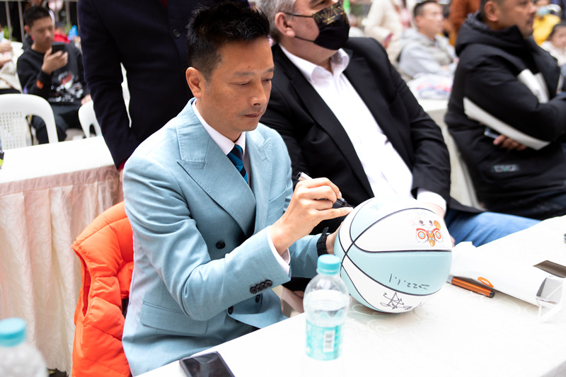 1月1日,塞鐵雙語籃球館中國首店在福建省福州開業。圖為中東歐之家創始人郭曉給籃球簽名 陳佳立供圖